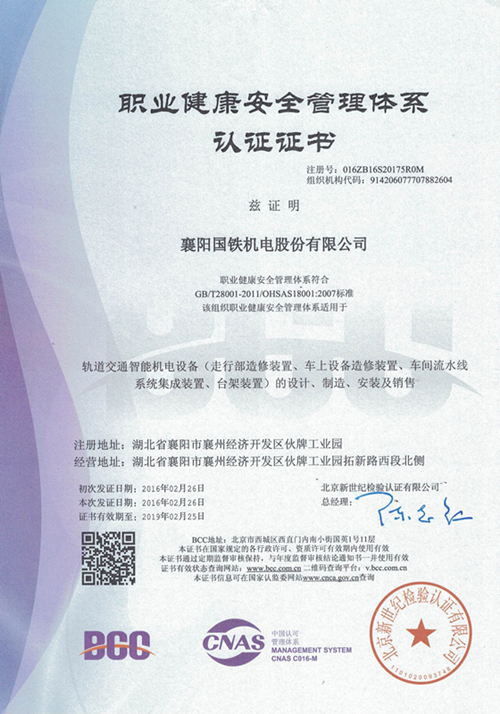 OHSAS18001:2007 Certificate